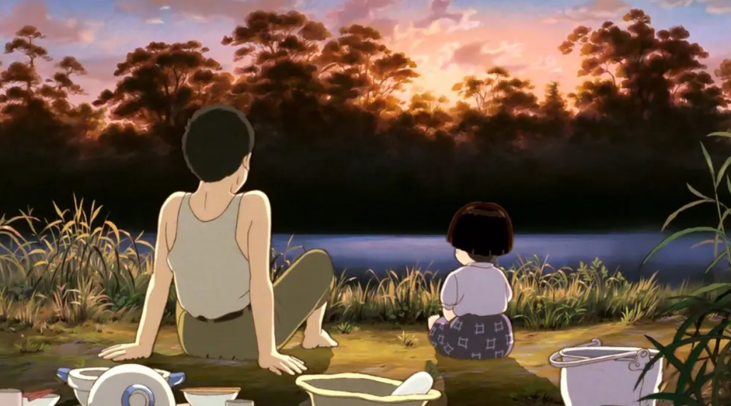 美日战争爆发,14岁的清太带着年幼的妹妹到处逃命,当他们到达防空洞的时候,母亲已身受重伤,没过多久便不久人世。两兄妹自此过着相依为命的日子。他们只好投靠了母亲的姐妹,纵使他们把家里所有的家当都送给了阿姨,但当食物吃完,他们就越感到了寄人篱下的感觉,清太决定带着妹妹离开独自生活。火灾硝烟中的生活并不好过,清太为了妹妹四处偷取食物,但妹妹还是严重营养不良……